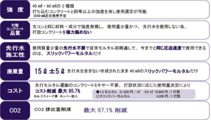 コンクリートポンプ専用 先行モルタル材 スリックパワーモルタル